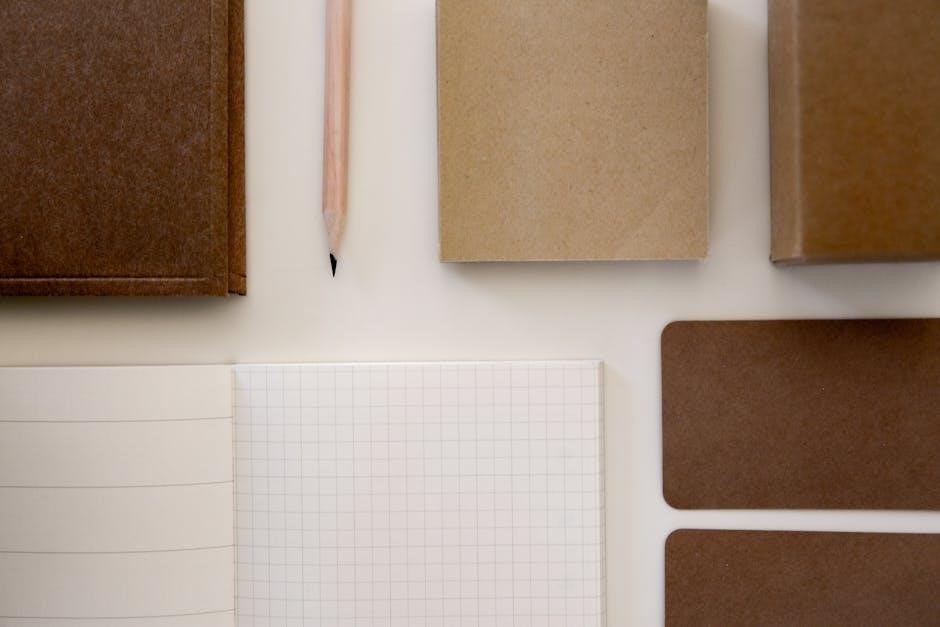 Printing alignment issues with 1 cm grid paper can occur due to incorrect printer settings. Ensure the page size matches the PDF (e.g., A4 or Letter) and orientation is correct. Check that the grid aligns with the paper edges by adjusting margins in the print dialog. Select “Actual Size” or “100% scaling” to prevent resizing. If lines appear misaligned, print a test page to verify settings. Adjusting the printer’s alignment calibration may also resolve the issue. Ensure the PDF is downloaded correctly and not cropped during printing.