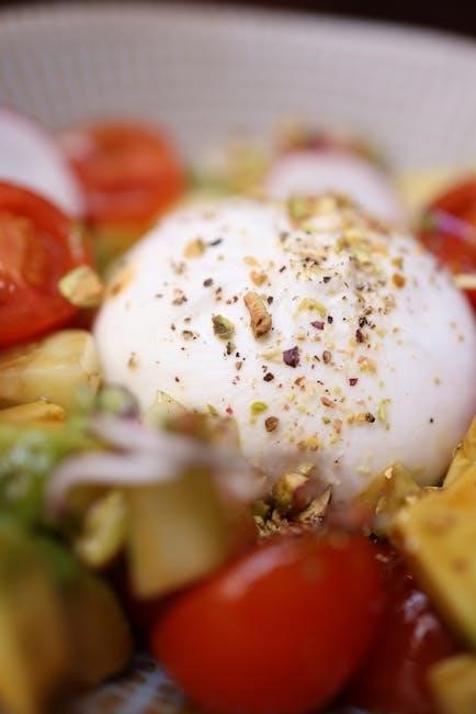 Maintaining variety in meals is crucial to staying motivated and satisfied on a vegetarian keto diet. While the diet focuses on high-fat‚ low-carb foods‚ there are plenty of creative ways to diversify your meals. Incorporate a mix of textures‚ flavors‚ and colors to keep your diet engaging. For example‚ start your day with chia seed pudding topped with fresh berries and nuts‚ or try a creamy avocado salad with leafy greens for lunch. Grilled paneer‚ roasted vegetables‚ and low-carb vegetarian curries are excellent options for dinner. Don’t forget to experiment with keto-friendly snacks like hemp protein bites or coconut-based treats. Meal prepping can also help ensure variety by allowing you to plan and prepare diverse dishes in advance. By exploring different recipes and ingredients‚ you can enjoy a wide range of delicious and nutritious meals while staying on track with your 7-day vegetarian keto meal plan.
