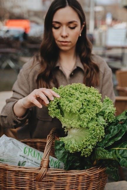 Adopting a vegetarian keto diet requires careful selection of low-carb‚ high-fat foods. Leafy greens like spinach‚ kale‚ and broccoli are excellent low-carb options‚ providing essential nutrients without exceeding carb limits. Cauliflower‚ zucchini‚ and asparagus are versatile vegetables that can be used in place of higher-carb alternatives‚ such as pasta or rice. Mushrooms are another great option‚ offering a meaty texture and rich flavor. For snacks‚ consider raw or roasted vegetables like celery‚ cucumbers‚ or bell peppers‚ which are naturally low in carbs. Additionally‚ fermented foods like sauerkraut and kimchi are not only low in carbs but also rich in probiotics. These options ensure a balanced and satisfying diet while keeping carbohydrate intake minimal. Incorporating these foods into your 7-day vegetarian keto meal plan will help you stay in ketosis and enjoy a variety of flavors and textures.