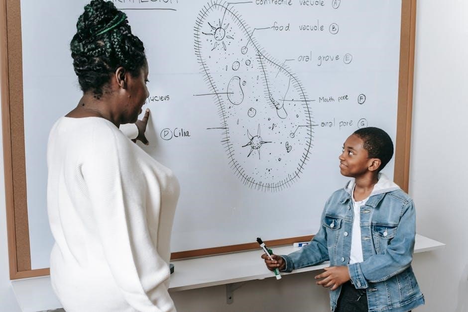 Teacher resources and lesson plans for AQA A Level Biology are designed to support educators in delivering the curriculum effectively. These resources include detailed lesson plans, activity ideas, and assessment tools, often provided by publishers like CGP Books and Hodder Education. Many resources incorporate the AQA A Level Biology Textbook PDF content, ensuring alignment with the specification. Teachers can access Exampro question packs, which offer a wealth of practice questions and mark schemes, aiding in formative and summative assessments. Additionally, interactive activities and practical demonstration guides are available, helping to engage students and enhance their understanding. These resources empower teachers to create structured, engaging lessons, ensuring students achieve their full potential in AQA A Level Biology.