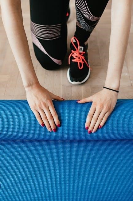Core strengthening exercises are fundamental for improving stability and overall fitness; Using a gym mat, individuals can perform effective routines like planks, crunches, and leg raises. The mat provides cushioning and support, reducing strain on the spine during movements. Pilates exercises, such as the hundred and single-leg stretches, are particularly effective for engaging the core muscles. Proper form is essential to avoid injury and maximize results. The mat’s surface ensures a stable base for dynamic movements, allowing users to focus on muscle engagement. Regular core workouts on a gym mat can enhance posture, balance, and athletic performance. Always prioritize proper breathing and technique to achieve optimal benefits from these exercises.