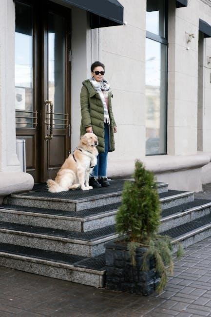 Service dog laws‚ primarily under the Americans with Disabilities Act (ADA)‚ ensure public access for service dogs without certification requirements. The ADA recognizes these dogs as essential aids‚ allowing them in all public spaces. While certification isn’t legally mandated‚ having a service dog certificate can simplify interactions and reduce disputes. It’s important to distinguish service dogs from emotional support animals‚ as their legal rights differ. Free service dog certificates in PDF format provide a professional way to document your dog’s status‚ aiding in public access and ensuring compliance with accessibility laws. Understanding these regulations helps service dog owners navigate daily situations confidently and effectively.
