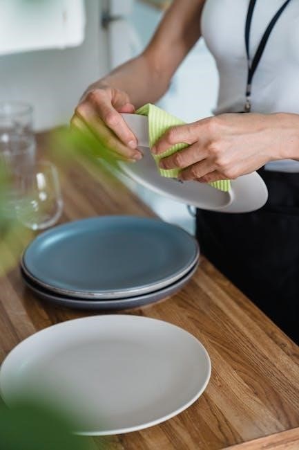 Regular maintenance ensures your GE Nautilus dishwasher operates efficiently. Check and clean the spray arms for blockages. Run a cleaning cycle with dishwasher cleaner every 1-3 months. Inspect door seals for wear and tear, replacing them if necessary. Ensure the dishwasher is properly loaded to avoid damage. Check detergent dosage to prevent overuse; Regularly wipe down the exterior and controls to maintain hygiene. Clean the drain filter as recommended. These practices help maintain performance, prevent breakdowns, and extend the appliance’s lifespan. Always follow the manual’s guidelines for specific maintenance routines tailored to your model. Consistent care ensures optimal cleaning results and reduces the need for repairs. Regular maintenance is key to enjoying long-term reliability and efficiency from your dishwasher.