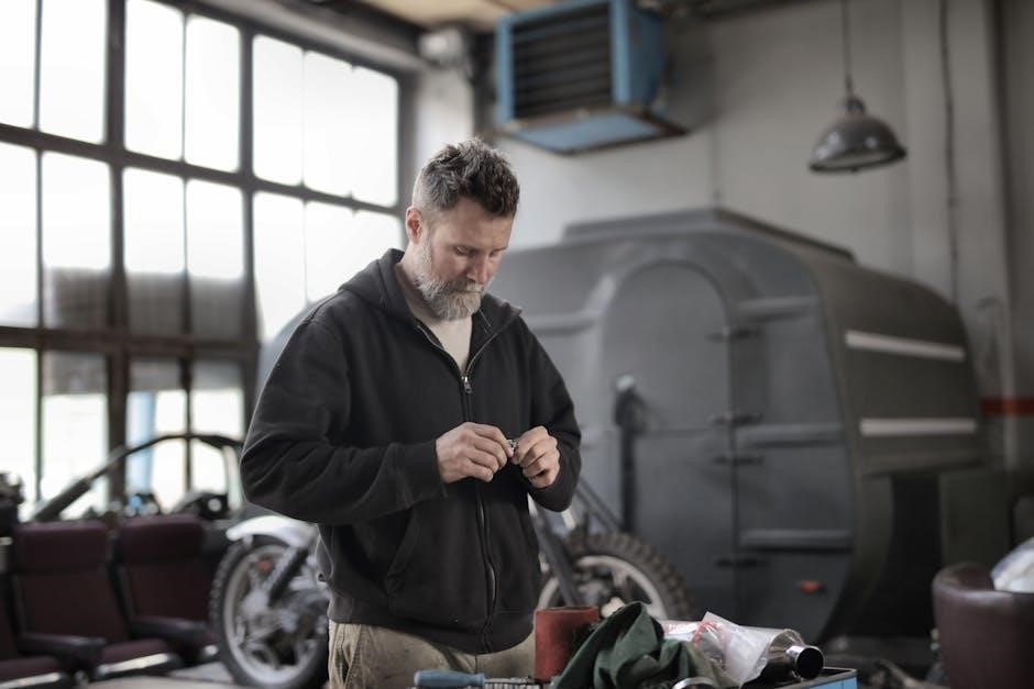 The Midmark M11 Service Manual is organized into clear sections, covering installation, operation, maintenance, and troubleshooting. It includes detailed diagrams, tables, and step-by-step instructions for optimal use; Key sections address safety protocols, daily maintenance tasks, and error code resolution. The manual also lists required tools and parts, ensuring users are well-prepared for repairs. Appendices provide quick reference guides, enhancing ease of use. This structured approach ensures comprehensive understanding and efficient operation of the M11 UltraClave Steam Sterilizer, making it an invaluable resource for both novice and experienced users.
