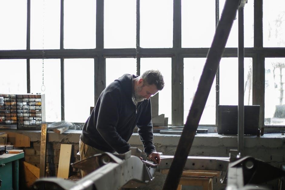 The Tennant T350 parts manual details the electrical and hydraulic systems, emphasizing their critical role in machine operation. Key components include motors, pumps, valves, and control panels. Regular maintenance of these parts is vital to ensure smooth functionality and prevent system failures. The manual provides diagrams and instructions for diagnosing and replacing electrical and hydraulic parts. Proper care of these components is essential for maintaining the T350’s performance and longevity. Users are advised to follow the manual’s guidelines for inspecting and servicing these systems to avoid operational disruptions and ensure safe machine operation.
