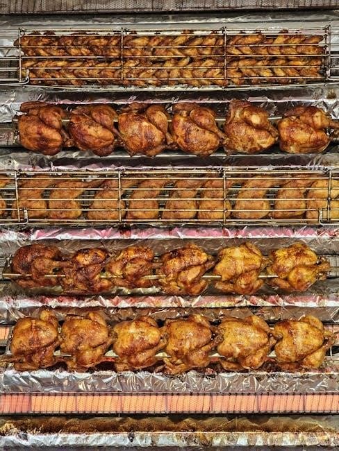 Ensuring the Turducken reaches a safe internal temperature is crucial. Use a meat thermometer to check the thickest parts of the turkey, duck, and chicken. The internal temperature should reach 165°F (74°C) for poultry to avoid foodborne illness. This applies to all three birds, as they are stuffed and layered. Avoid piercing too deeply, as this can release juices and dry out the meat. Proper temperature control ensures both safety and even cooking throughout the dish.